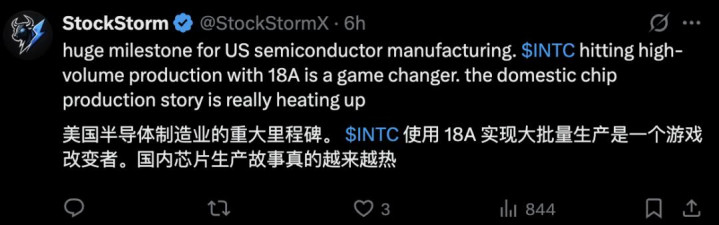 英特尔推动18A量产被视为美国半导体业的重大转折点。
