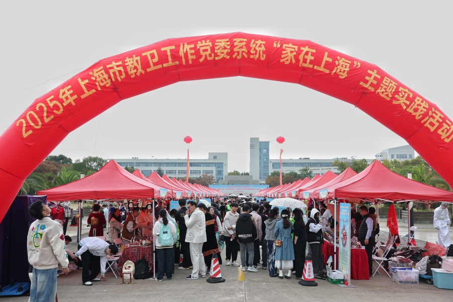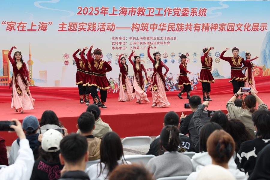11月5日,2025年上海市教卫工作党委系统“家在上海”主题实践活动——“构筑中华民族共有精神家园”文化展示在上海第二工业大学举行。复旦大学、上海交通大学、同济大学、华东师范大学等40所高校的千余名各民族师生参加文化展示活动。