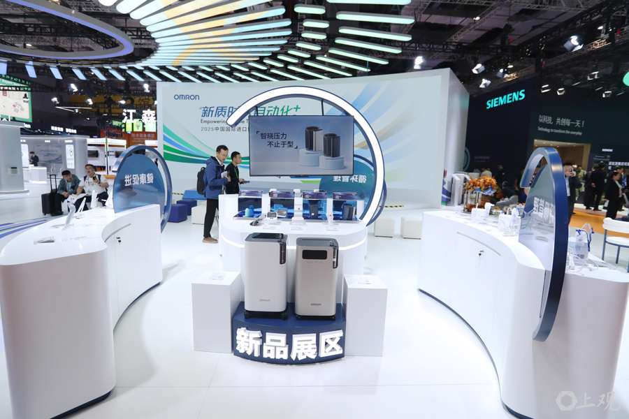 在进博会4.1馆欧姆龙新品展区,一款指甲盖大小的动态血糖仪吸引人们的目光。这是欧姆龙健康医疗在中国首发的持续葡萄糖监测系统CGM GS1,目标是推动健康管理从“被动就医”转向“主动管理”。